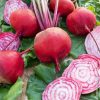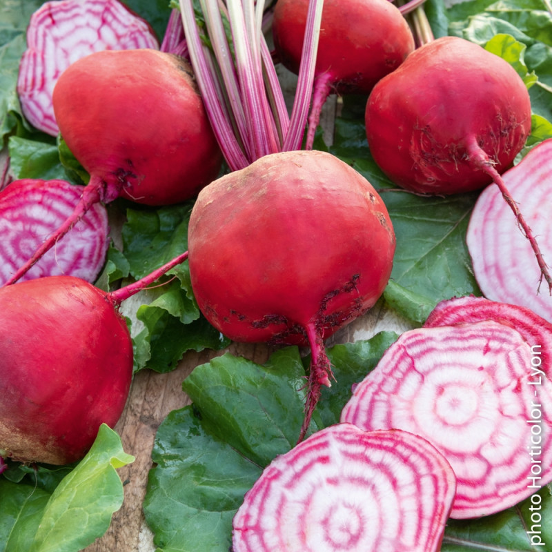 La Betterave de Chioggia est une variété ancienne italienne très hâtive à racine ronde et à la chair sucrée, rose veinée de blanc. Sa magnifique chair rend la betterave Chioggia très décorative en cuisine par les grands chefs lorsqu’elle est consommée crue.