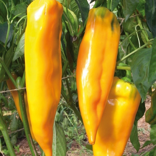 Variété de poivron couleur jaune-orangé, délicieux et d’un très bel effet dans les assiettes.